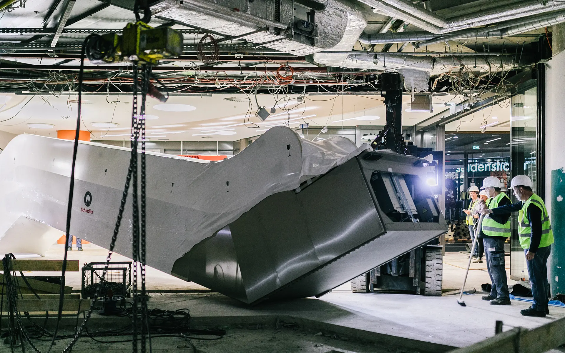 - Besonderheiten: Einbau von neuen Fahrtreppen mit Einpassung in eine bestehende Deckenkonstruktion.